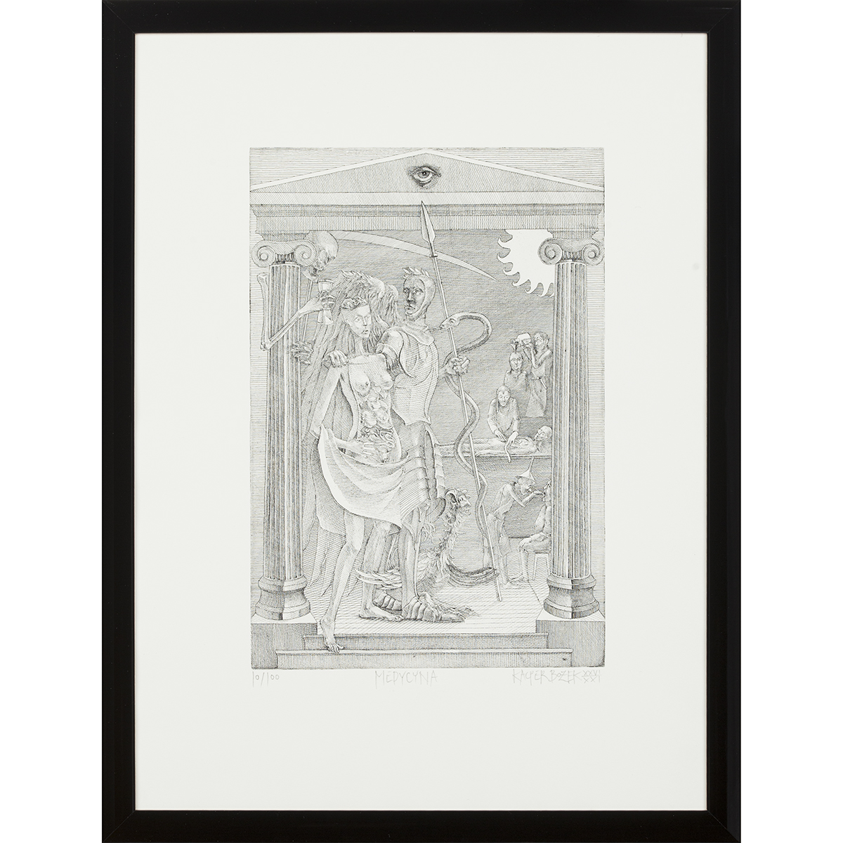 Praca odręcznie sygnowana i numerowana poniżej kompozycji: "10/100 / MEDYCYNA / KACPER BOŻEK XXVI/XXI".