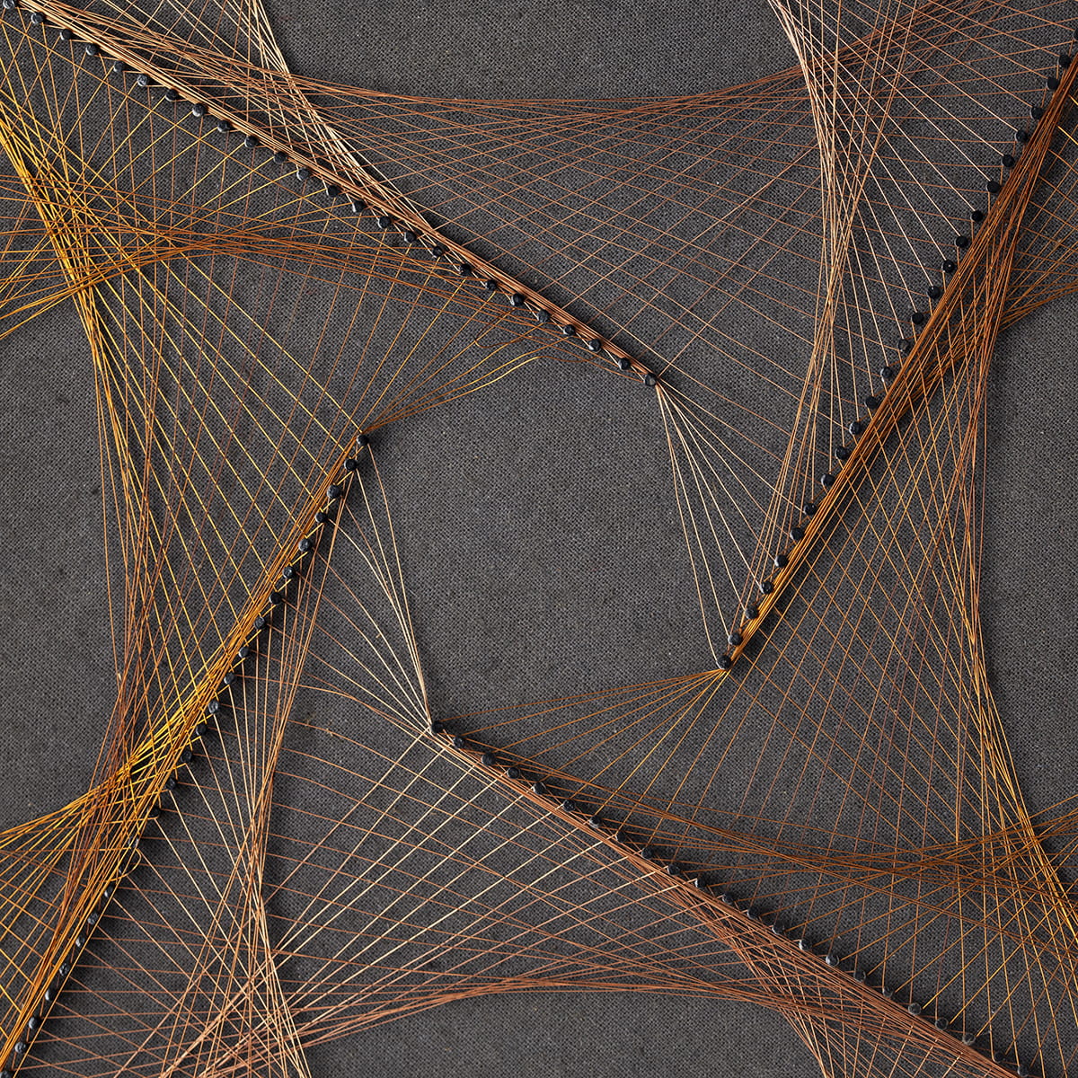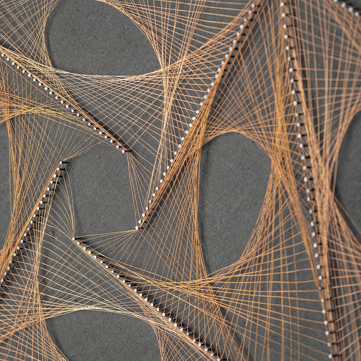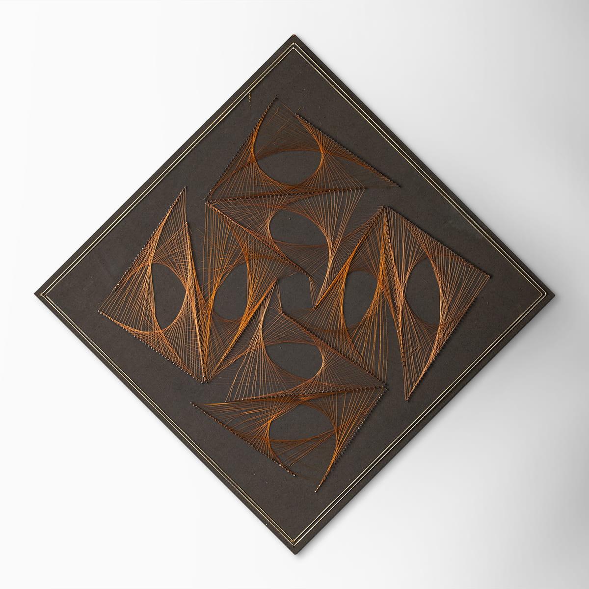 Praca nierozpoznanego, polskiego (najpewniej krakowskiego) artysty z lat 60-tych XX wieku, wykonana za pomocą miedzianego drutu , będąca przykładem sztuki Op-art. Dokładne i zaplanowane ułożenie gwoździ stanowiących stelaż umożliwiło artyście stworzenie trójwymiarowej, skomplikowanej i geometrycznej kompozycji. Tło pracy stanowi twarda deska pokryta bawełnianym materiałem w ciemnoszarym odcieniu.